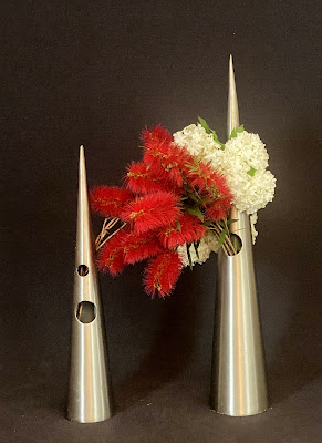 Earlier this month our Sogetsu group had a guest presenter at our workshop. Sandy Marker from Sydney had set two themes for an all day workshop. The first was a double theme - 'Using two or more Containers' and 'A Massed Arrangement'.